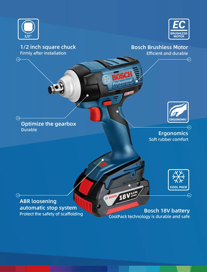 Special Offer Bosch GDS18V-EC 300ABR Rechargeable Brushless Electric Wrench Car Tire Mounting Scaffold Equipped With Two 18V 4An Batteries Discount 20% Today!