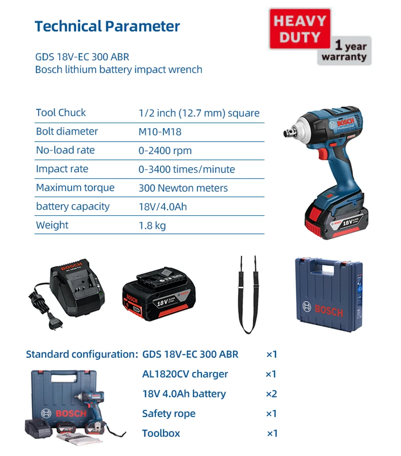 Product Name: Bosch GDS18V-EC 300ABR Rechargeable Brushless Electric Wrench Car Tire Mounting Scaffold Equipped With Two 18V 4An Batteries